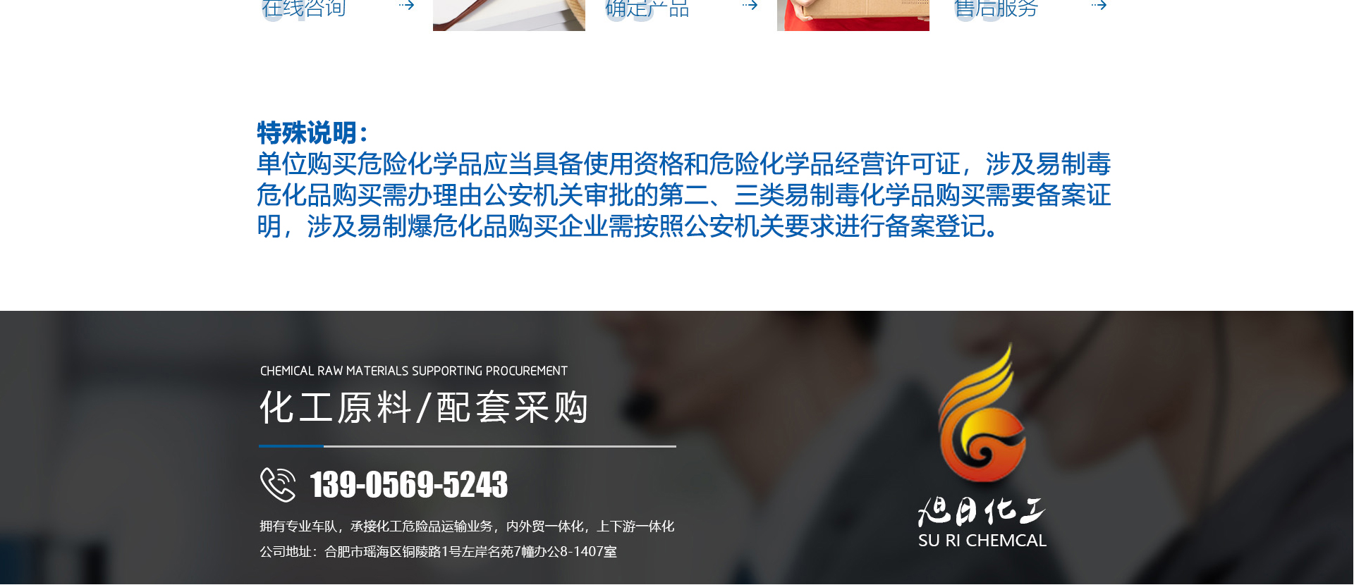 合肥旭日化工有限公司是合肥市化工行業協會理事單位,該公司擁有獨立的供貨能力,專業的車隊,良好的商業信譽,完善的售后服務。秉承“精細化工、質量為本、用戶至上、誠實守信”的企業理念。從事各類化工溶劑和原料的國內貿易;為各醫1藥化工廠、印刷皮革廠、電子工廠等提供各種化工原料配套采購。目前,公司正朝著以貿易為基礎、以實業為依托,全球采購、全國銷售,內外貿一體化,上下游一體化,具有綜合增值能力和復合競爭能力化工原料供應商。本公司主要經營的產品有:鹽酸、硫酸、三氯化鐵、甲醛、氨水、液氨、片堿等。合肥旭日化工有限公司為客戶提供優良的服務及高品質的產品,本公司經銷的各種產品不僅在安徽地區深受用戶好評,而且具有很高的市場占有率,產品行銷全國各地區。